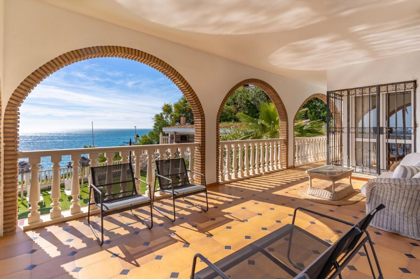 The spacious villa with a terrace and sea views has 6 bedrooms, a living room, a TV, an equipped kitchen with a dishwasher and an oven, and 5 bathrooms with a bath. Towels and bed linen are offered in the villa. The accommodation offers a fireplace.