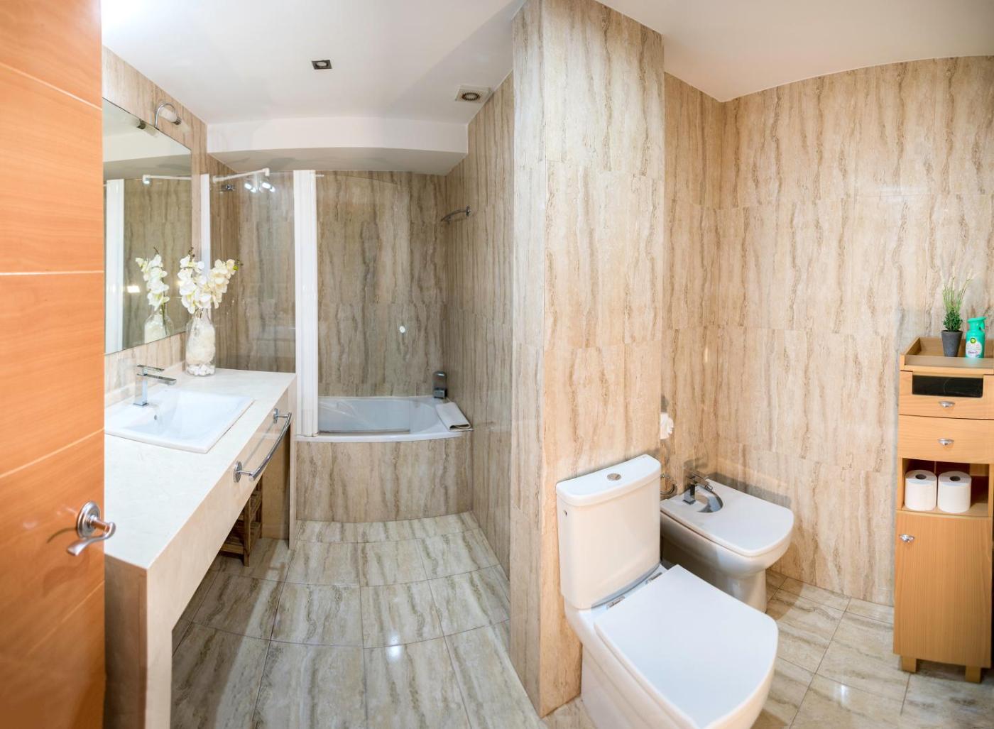 The spacious apartment features 2 bedrooms, a living room with a flat-screen TV, an equipped kitchen, and 2 bathrooms with a bath and a hair dryer. Towels and bed linen are featured in the apartment. The property offers city views.