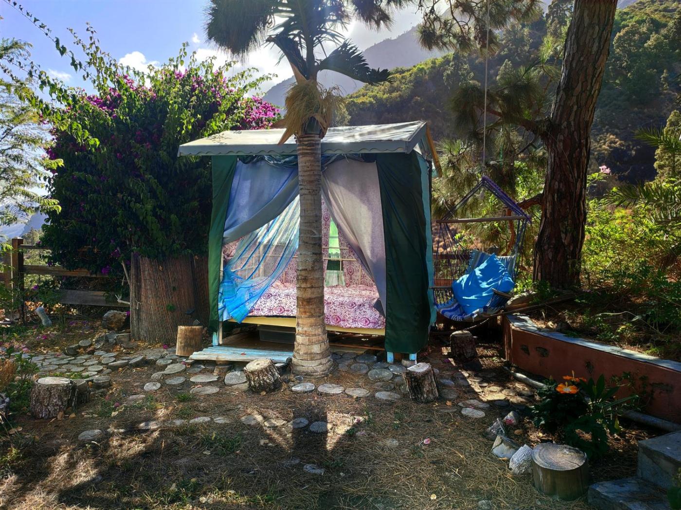 Tent. The tent includes a shared bathroom equipped with a shower. In the kitchen, guests will find a stovetop, kitchenware and a tea and coffee maker. The tent features a balcony with outdoor furniture and garden views to relax in after a busy day. The unit offers 1 bed.