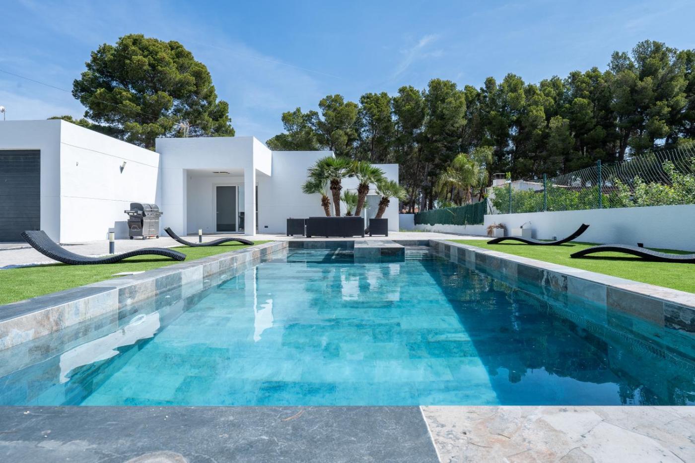 Villa with Private Pool. This luxurious villa provides a private pool, a hot tub and a spa bath. This air-conditioned villa consists of 1 living room, 4 separate bedrooms and 2 bathrooms with a shower. Guests will find a refrigerator, a dishwasher, kitchenware and an oven in the well-equipped kitchen. The villa also offers a barbecue. The unit features a washing machine, garden views, a terrace and winechampagne is provided for guests. The unit offers 7 beds.
