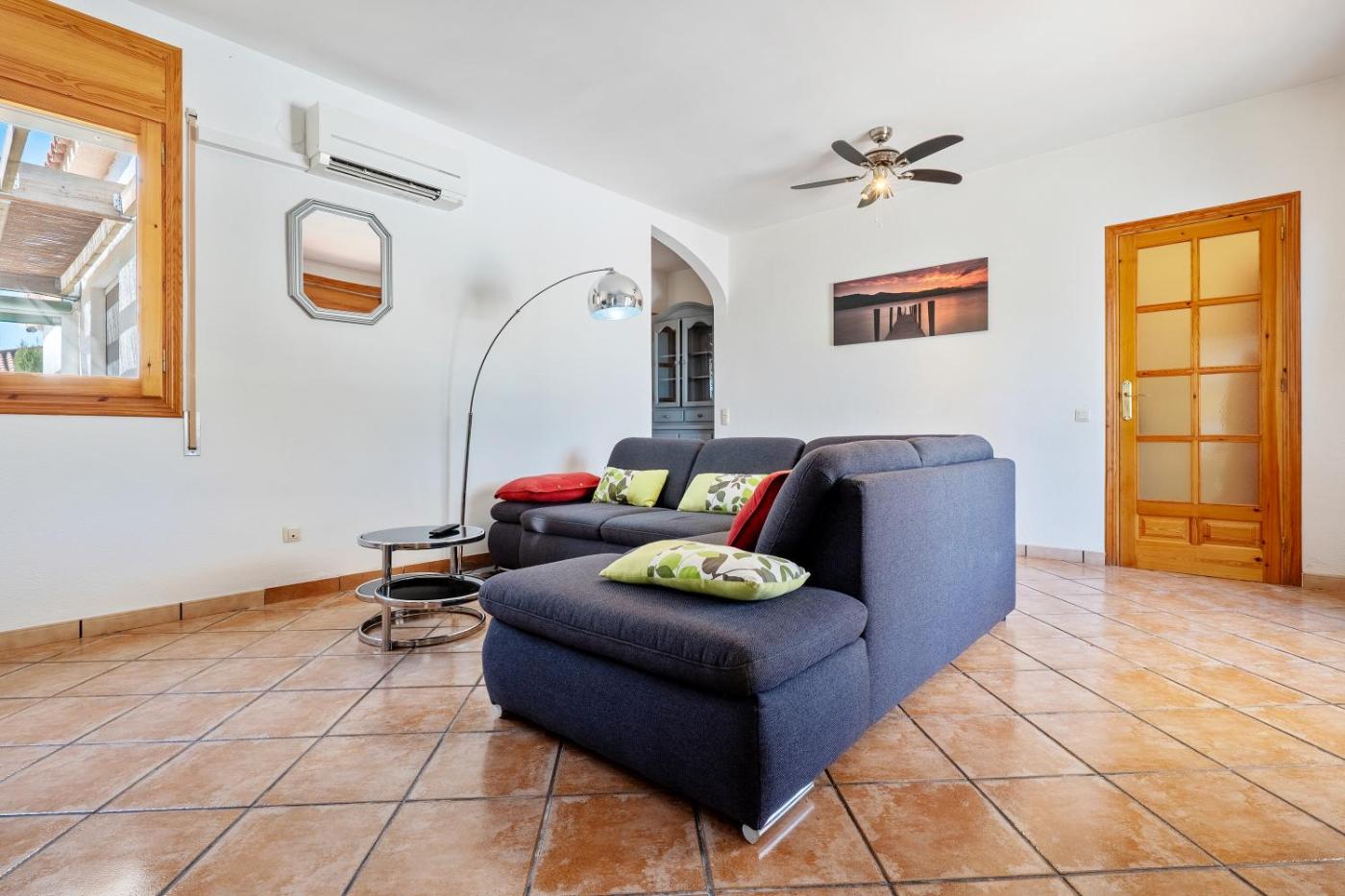 With direct access to a patio with mountain views, the spacious air-conditioned holiday home consists of 3 bedrooms. Offering a terrace with sea views, this holiday home also features a TV, a well-equipped kitchen with a dishwasher, a microwave and a fridge, as well as 2 bathrooms. The accommodation offers a fireplace.